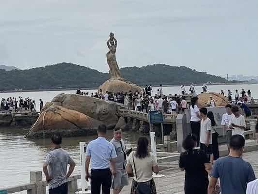 珠海渔女伫立于香炉湾畔,双手擎珠,象征珠海的浪漫文化与历史底蕴。