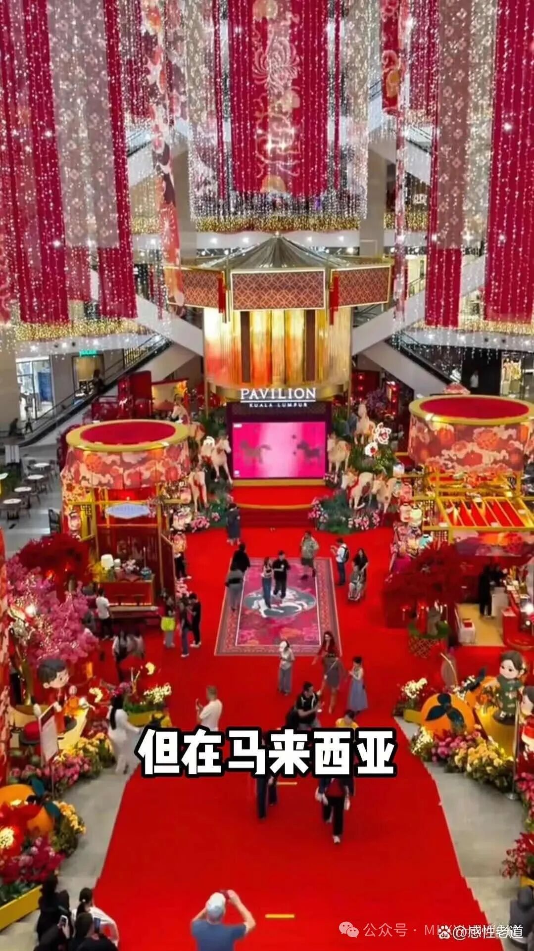 马来西亚的春节氛围,早在农历新年前一个月就已悄然蔓延。不同于其他国家零星的华人社区装饰,这里的年味是全城性的沉浸式狂欢——红灯笼挂满吉隆坡双子塔周边的街道,春联福字贴遍马来族、印度族经营的商铺,商场化身新春主题乐园,将传统元素与现代创意完美融合,让每个角落都洋溢着红火吉祥的气息。各大商场的新春装饰堪称视觉盛宴。2026马年春节,吉隆坡柏威年广场(Pavilion KL)联名潮流IP打造艺术灯笼展,3D拜年动画在巨型屏幕循环播放,马年限定盲盒快闪店前人头攒动;双威金字塔广场则以“马腾祥瑞”为主题,巨型金马立于走马灯中央,六匹彩马灯饰寓意六六大顺,成为民众打卡合影的热门地标。