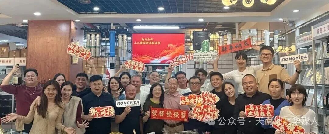 2月7日,由省酒餐协供应商委员会成员海南荣毅达餐饮设备有限公司主办的“省酒餐协春节餐饮服务工作交流会暨特色餐饮迎新春联谊会”在金海酒店用品城圆满举办。餐饮品牌及合作供应商近30人欢聚一堂。杜毅德董事长表示,此次相聚既是感恩答谢的温情,亦是共话行业发展的交流盛会,希望2026 年,我们继续携手抢抓行业新机遇,共绘海南酒店餐饮产业高质量发展的新篇章。