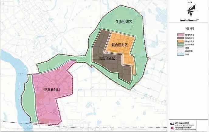 “地区国家交往平台、海南国际新客厅”;国际综合服务组团定位为“滨江国际活力中心,将建设成为海南自贸区、自贸港的核心示范区”;国际高教科研组团定位为“面向国际的学研产创一体化平台和引领国际前沿的科教智慧高地”。