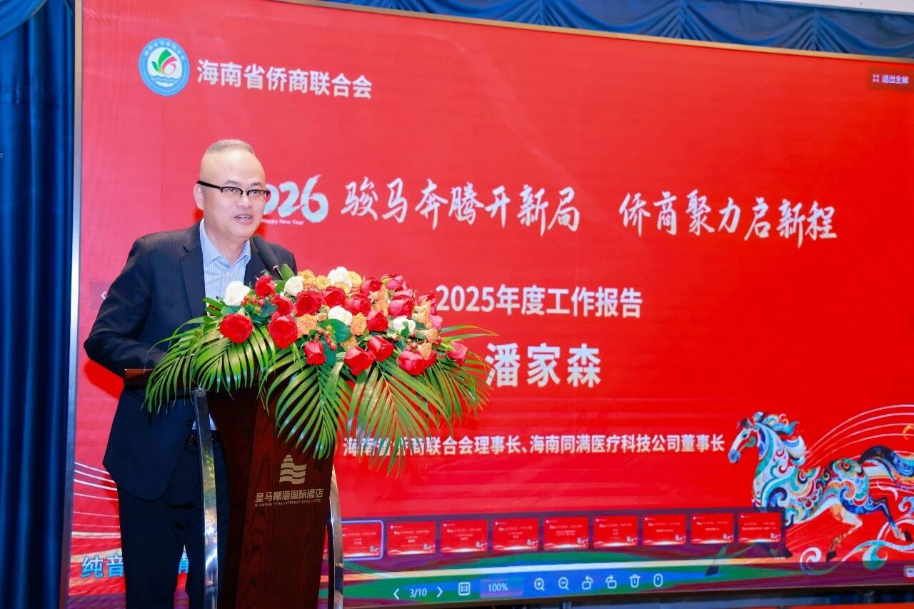洪江游在致辞中表示,海南自贸港建设进入封关运作关键期,为侨商提供了宝贵发展机遇。他表示,2026年将继续深化“海南侨商组织联络服务站”功能,推动市县侨商会建设,织密组织网络,助力侨商共享红利、把握发展机遇。