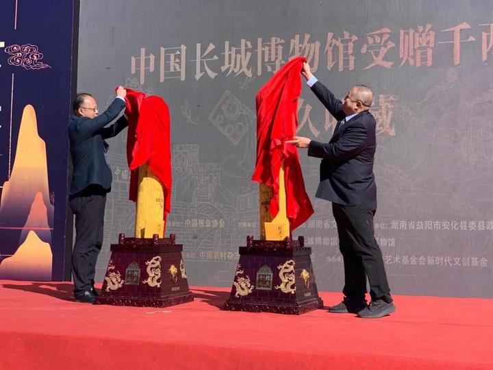 安化县人民政府向长城博物馆赠送由 安化县出品的《万里长城千两茶》