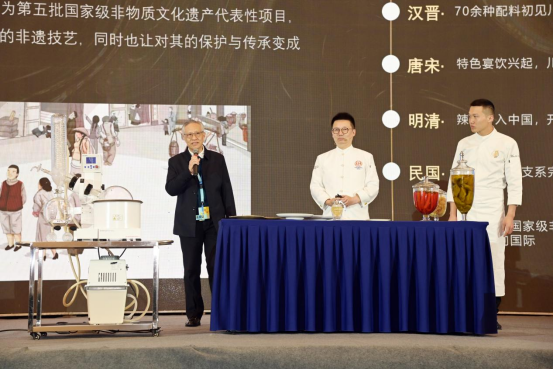 川菜非遗国家级代表性传承人、四际餐饮集团董事长徐孝洪在《川菜的科学烹饪与艺术表达》演讲中,运用先进设备现场演示,深入阐释科学烹饪理念以及川菜技艺的文化内涵与当代价值。同时,邀请中国烹饪大师、川菜大师张中尤共同解读川菜传承与创新的时代意义。