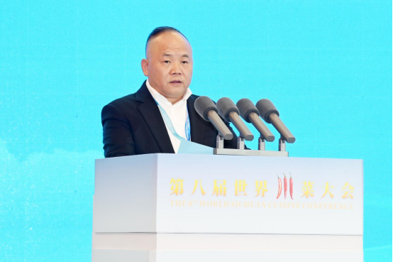 世界中餐业联合会副会长、川菜产业分会主席、眉州东坡集团董事长王刚在致辞中说,近年来,川菜产业已从“区域风味”逐步发展为“全球产业”。从上游食材种植的标准化,到中游餐饮品牌的连锁化与年轻化创新,再到下游预包装食品与川味调味品的市场拓展,整个产业正朝着“品质化、多元化和数字化”方向稳步迈进,持续为全球餐饮市场注入鲜活的“川味力量”。他指出,川菜产业在海外发展的道路上机遇与挑战并存。文化差异带来的口味适配难题、海外供应链建设的高成本压力,仍是当前需要突破的关键。而支撑产业应对挑战、把握机遇的核心,正是一代代川菜人所传承的“企业家精神”——既有老一辈匠人对火候与调味的精益求精,也有新一代创业者对数字化与新消费趋势的积极探索,更体现了“专注品质、坚守文化、勇于开拓”的初心。他呼吁与会同仁以此次会议为契机,扎根食材与技艺,做好“川味”的守护者;同时勇于突破边界、拥抱年轻群体,成为川菜文化的开拓者,让更多人爱上川菜、读懂川菜。
