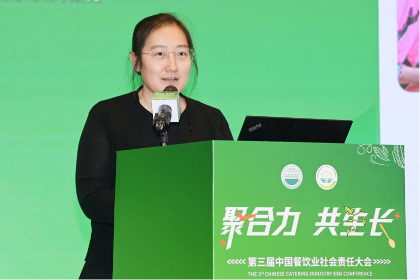 中国商业联合会原副会长、全国酒家酒店等级评定委员会主任张丽君在致辞中充分肯定世界中餐业联合会连续三年在行业内系统推进ESG相关工作,通过征集和宣讲优秀案例、发布行业倡议与实践报告、宣贯核心指标体系,以及今天即将发布的ESG实践十大关键词等一系列务实举措,有效地提升了全行业的社会责任认知与意识,这些工作有力地引导了企业追求与社会、环境的和谐共生,为餐饮产业的高质量发展注入了新的理念动力。她指出,中国餐饮业践行ESG理念,具有多维度和战略性的重要意义,体现在绿色发展、民生服务、文化传承、行业协同等多个方面。根据党中央对“十五五”规划建议精神,绿色低碳、可持续发展已不再是企业的“加分项”或“可选项”,而是决定企业未来生存空间与发展质量的“必选项”和“得分项”。必须将ESG从理念倡导全面转向深度融入运营管理的实际行动。一是发挥标杆引领,推动全面参与,找准切入点,因地制宜地履行社会责任,形成企业协同共进的责任共同体。二是鼓励模式创新,探索特色路径,探索公益项目与商业模式的有机结合,让社会责任实践创造共享价值,更具生命力和可持续性。三是构建协同生态,凝聚各方合力,共建一个政府引导、协会推动、企业主体、社会参与的责任餐饮生态圈。