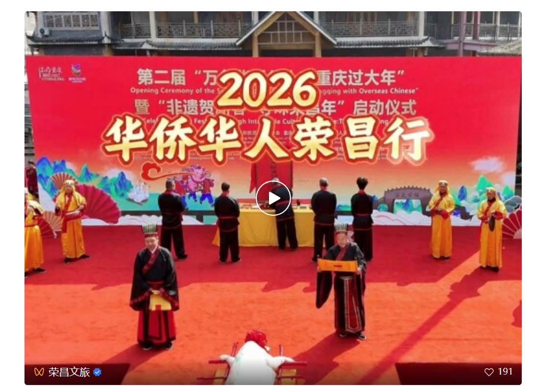 2026年2月11日农历南方小年,作为“向世界讲述重庆”系列活动之一,第二届“万名华侨华人在重庆过大年”活动在荣昌万灵古镇启幕。本次活动由市文化旅游委、市侨联、荣昌区人民政府联合主办,市卫生健康委支持,以“中国年 重庆味” 为主线,为华侨华人量身定制的“欢乐春节”主题活动。来自英国、德国、澳大利亚等10余个国家和地区的近200位华侨华人与重庆市民欢聚一堂,共赏传统习俗,共迎新春盛景。