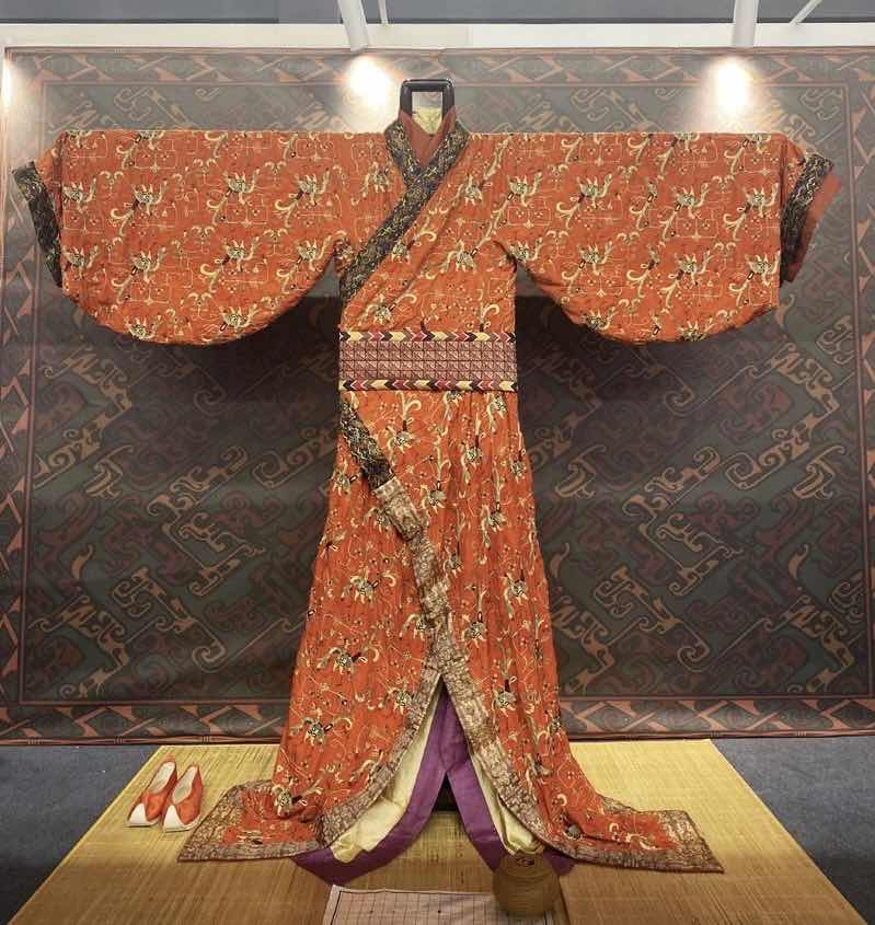 楚服在长江文明传播中的作用,楚国东扩至江淮(今江苏一带),将楚服样式、织绣技艺带入当地,影响吴越地区服饰发展。南京博物院“归流”特展即展示楚文化对江苏的深远影响 ;通过贸易与战争,楚式丝织品、漆器、青铜器等沿长江上达巴蜀、下达岭南,推动长江流域文化一体化;汉代深衣吸收楚服元素,形成“形秦神楚”的融合风格;汉绣、西兰卡普等非遗技艺至今仍在长江中游活态传承 。