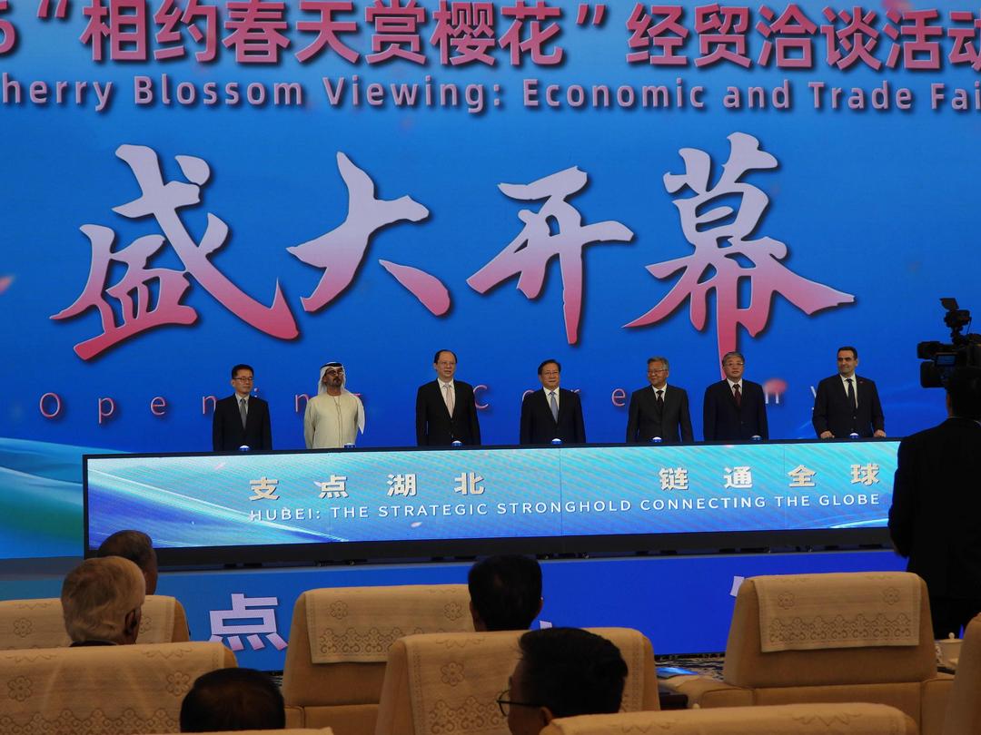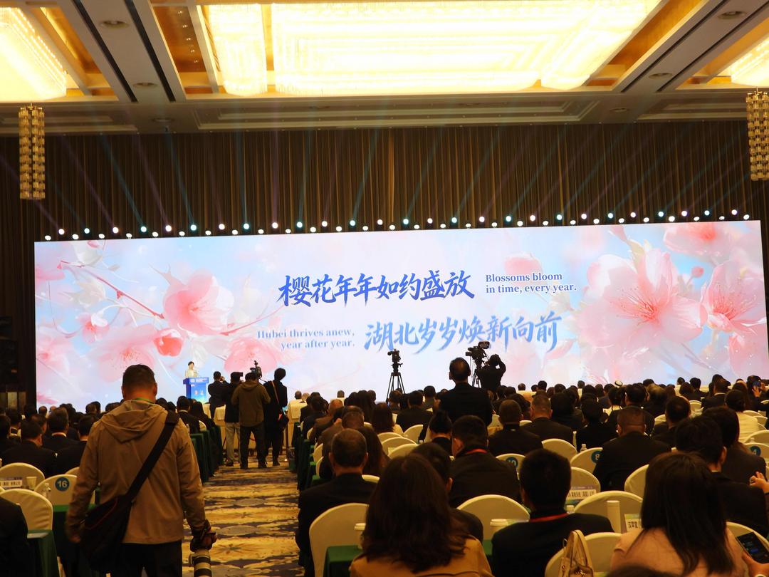 活动现场,王忠林、李殿勋、罗永纲、袁晓明、阿联酋驻华大使侯赛因·哈马迪、土耳其驻华大使塞尔丘克·于纳尔、韩国驻华大使馆经济公使金振童共同推杆启动2026“相约春天赏樱花”经贸洽谈活动。