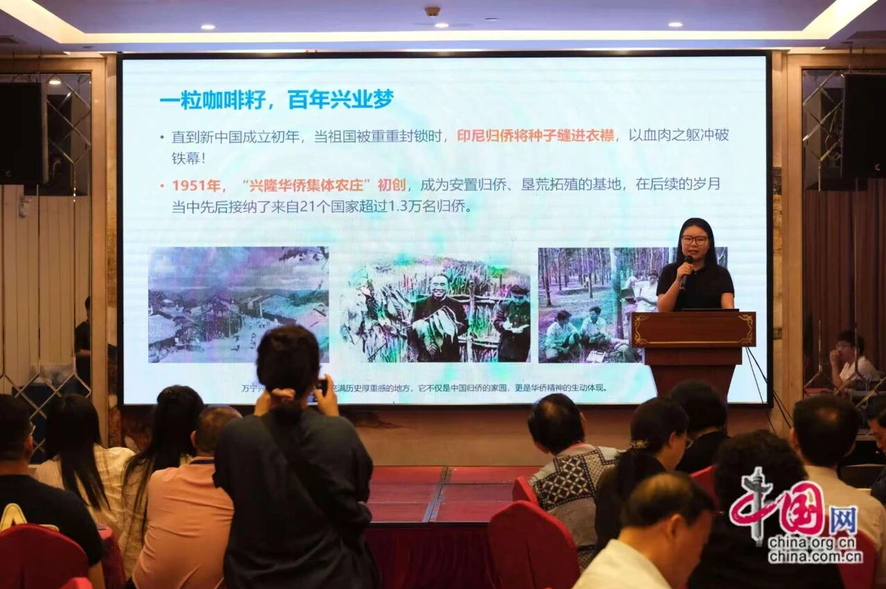万宁市商务局招商专员苗月馨详细介绍了万宁的产业布局与自贸港政策优势。她从咖啡产业说起:“1951年兴隆华侨集体农庄初创,接纳了来自21个国家超过1.3万的归侨,他们播下了咖啡的希望。如今,当年的种子已长成产业森林,兴隆咖啡构建起从种子到杯子的完整产业链,年产值达5亿元。”