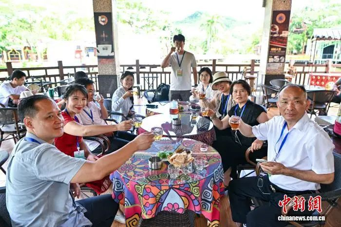 参加“追梦中华·扬帆自贸港”2025海外华文媒体海南采访行的10国海外华媒代表,27日走进万宁兴隆咖啡谷,在太阳河畔品兴隆咖啡,倾听由咖啡引出的一段归侨往事,了解当地咖啡产业发展促进乡村振兴的故事。