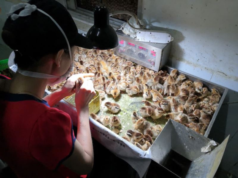 在海南传味文昌鸡产业股份有限公司,一名工作人员正在将鸡雏分别雄雌 贾月洋/摄